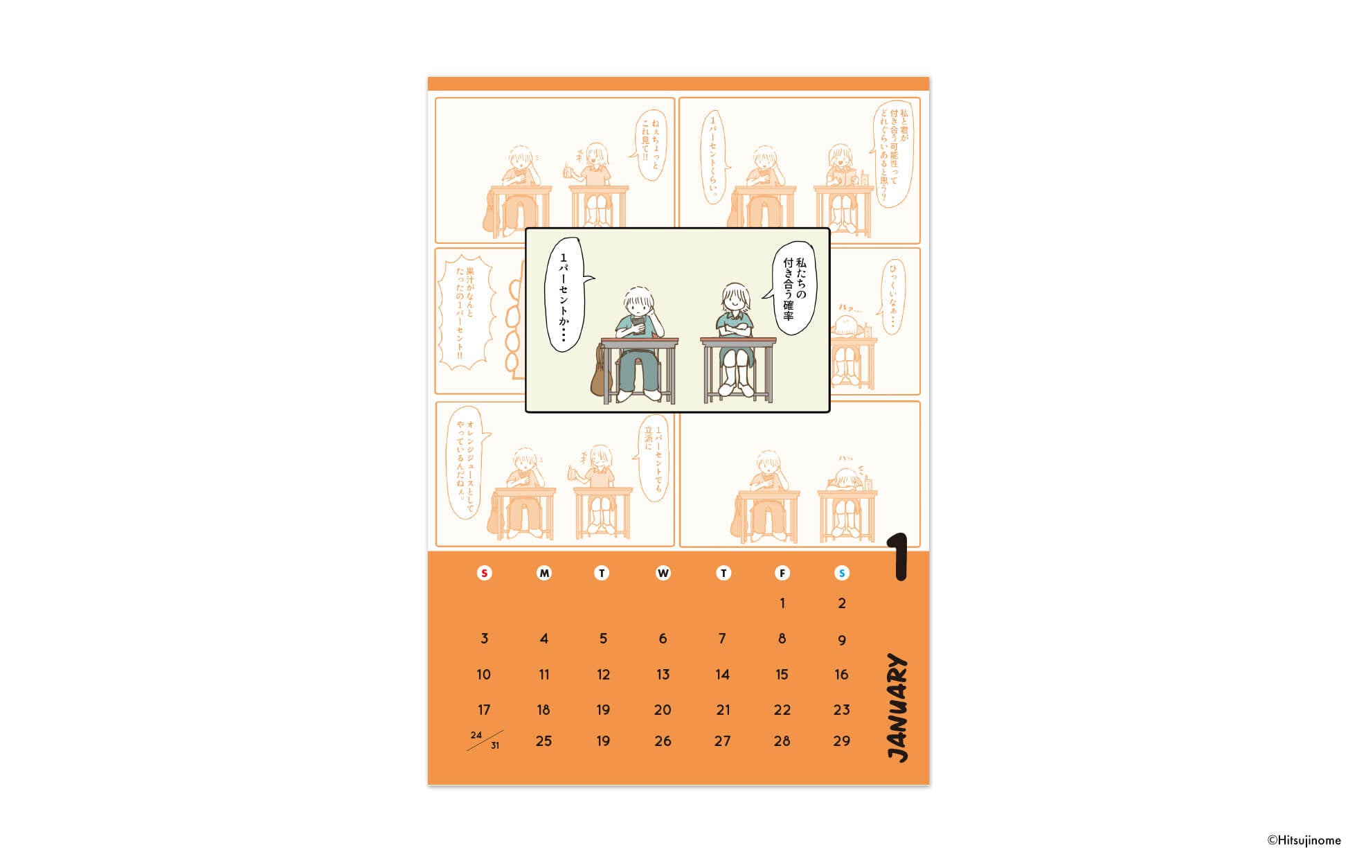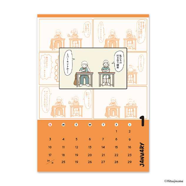 「始まりは、たった1%から。」最初は付き合う確率が1%くらいだった葵と夏樹。そんなふたりが素敵な関係を育む12ヶ月がカレンダーになりました!